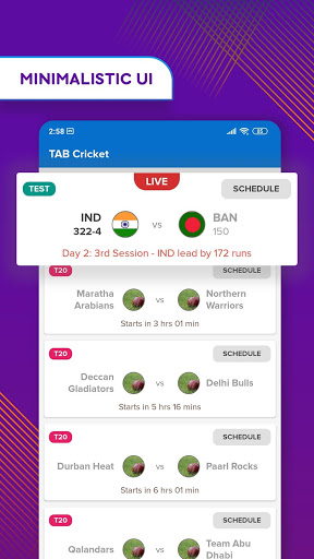 AD FREE Live Score and Schedule by TAB Cricket