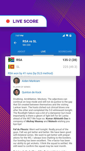 Live Cricket score brings me the best experience of getting Cricket Live Scores, Ball by Ball Commentary and many more
