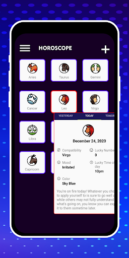 Start your day by checking out your daily horoscopes. You will get horoscopes for today, tomorrow and yesterday. You can also view the lucky number, coloraturas and mood.