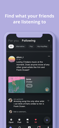 - Share your music taste to the world in your profile where you can edit your top genres and bio.