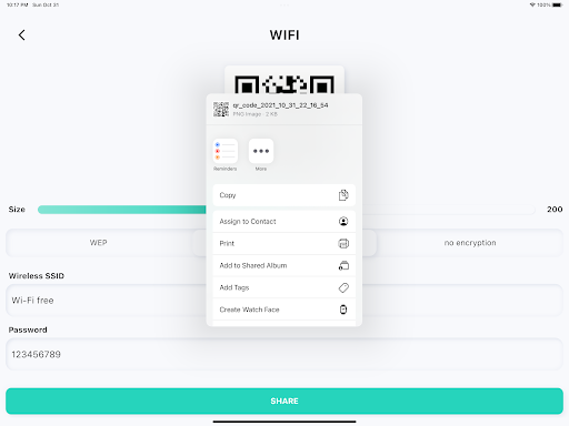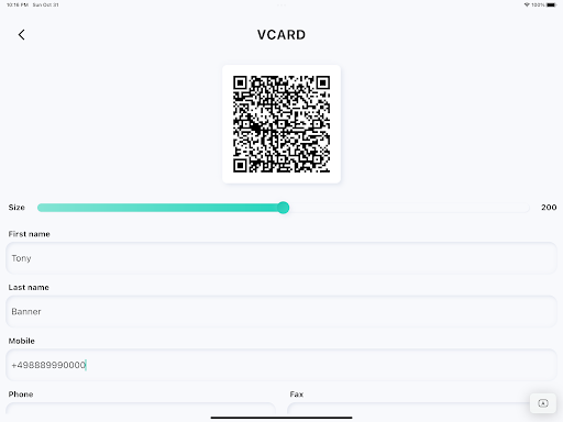 - Generate QR Code for Website URL, Contacts, text, Wifi, Business card, SMS