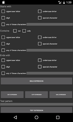 Need a regular expression ? Use this app to construct one by choosing from a set of options.