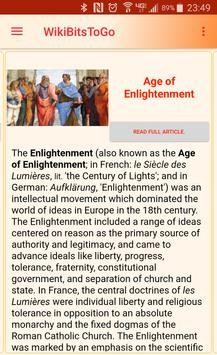 Wikipedia can be overwhelming. Try an alternate way of exploring it! Wiki Bits To Go provides a manually cured list of wiki articles, minimalist user interface and easy to use navigation.
