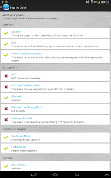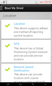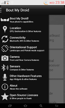 Bout My Droid (BMD) is a Information App that tells you what features are available for your phone. I have tried to cover most standard features available in any smartphone today and I'll try to keep the app updated as often as possible. In simple words, BMD simply lets you know what your phone is capable of!