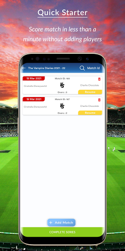 1. Create Series and teams on the go. (Just type the series name, team names and start the match & we will take care of rest.)