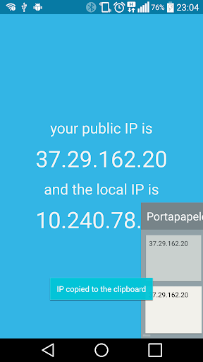 myIP it's a simple tool to know your public (external) and local IP addresses. There are multiple times when you need to know your IP address, as setting up your router configuration. Whatever the problem, this is the IP address tool, and for free!