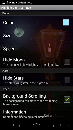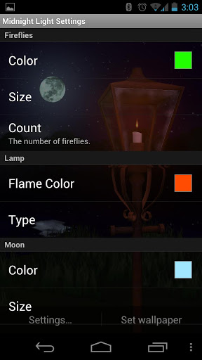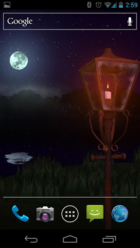 A lamp glowing in the darkness of the night. A full moon reflected in a cool pond. Fireflies meandering through the night air...these are some of the simple beauties to be expected from the Midnight Light Live Wallpaper.