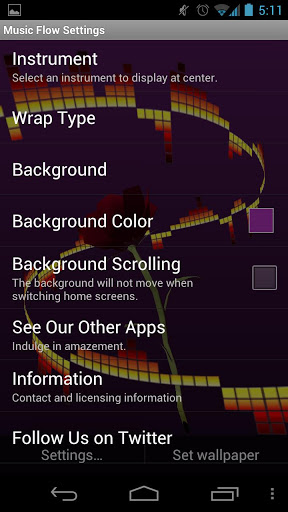 Choose from a range of 3D objects, colors and either an audio wave form or a musical bar. This Live Wallpaper will catch the eyes of those around you.