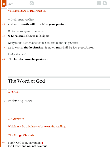 · Instant access to Bible readings, prayers and responses, collects and Canticles