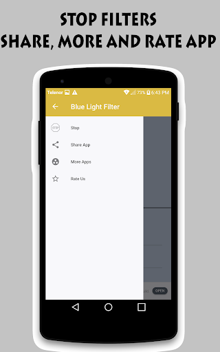 Applying the Blue light filter- Care Your Eye Filter will help you turn on and turn off the app in one second. best useful app for your eye care.