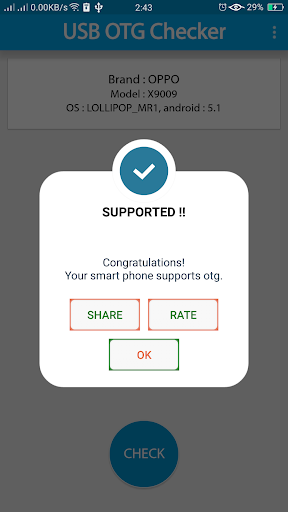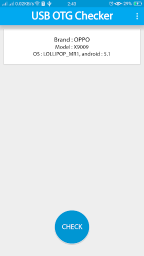 USB OTG Checker helps to check the compatibility with USB OTG devices. OTG or on the go USB devices can be used in the USB port of the phone via OTG USB cable. This app will help you to check the presence of USB manager and to find the list of connected USB devices.