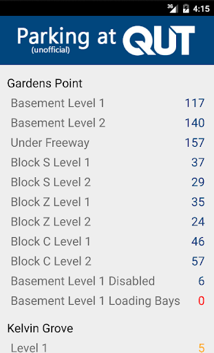 Quickly and easilly check parking availability at QUT Gardens Point and Kelvin Grove campuses.