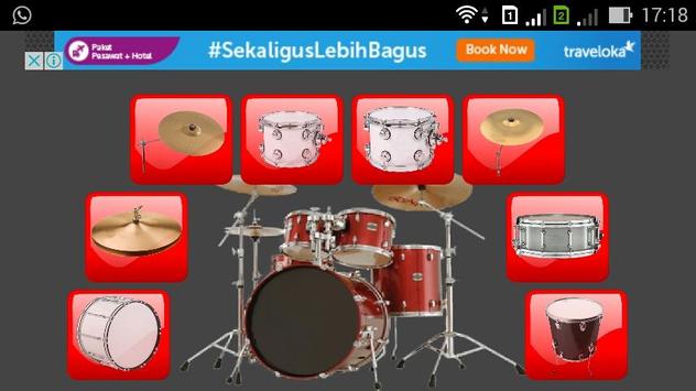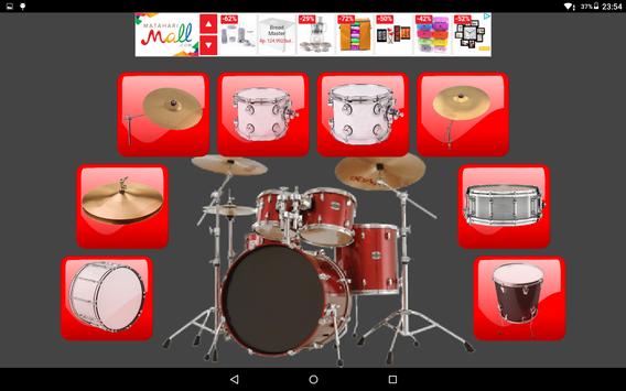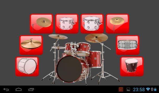 to play, simply just tab your finger on the button that represent the drum component like bass drum, snare drum, ride cymbal, crash cymbal, hit hat cymbal, floor tom, tom tom.