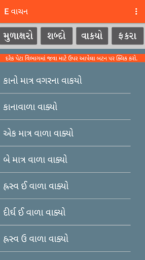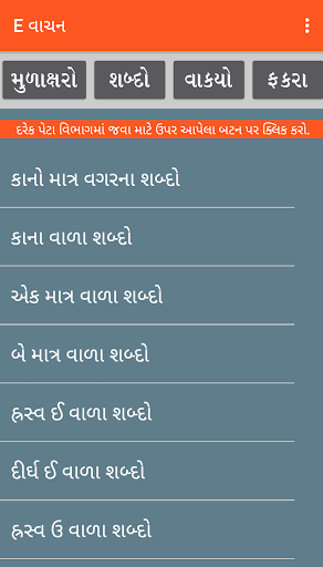 નમસ્તે મિત્રો, આ એપમાં તમામ બાળકો , શિક્ષકો તથા વાલીઓ માટે બાળકની વયક્ક્ષા અનુસાર તેમને જરુરી વાચન સામગ્રી પૂરી પાડેલ છે.જેને '' E વાચન '' નામ આપેલ છે.જેમાં તમામ શબ્દો,વાક્યો અને ફકરા ક્રમશ: બાળકની વયકક્ષા અનુસાર ગોઠવેલ છે.જેમાં
