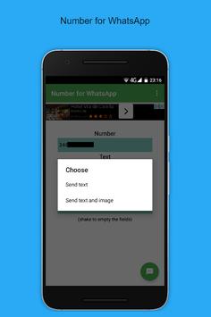 Number for WhatsApp allows us to send text-only messages as well as messages with an image from Gallery.
