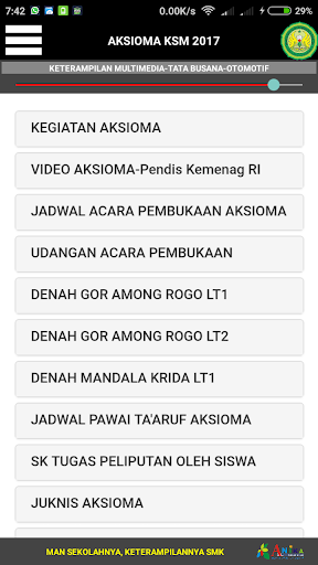 Aplikasi Android MAN 2 Bantul adalah sebuah aplikasi yang digunakan untuk sistem manajemen Informasi. Aplikasi ini berisi :