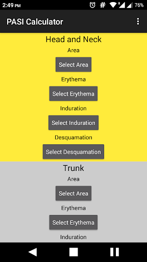 A representative area of psoriasis is selected for each body region. The intensity of redness, thickness and scaling of the psoriasis is assessed as none (0), mild (1), moderate (2), severe (3) or very severe (4).