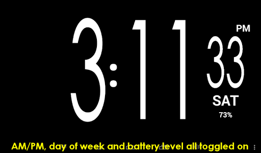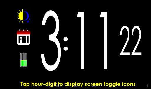 Just a simple clock with the advantage of a giant time display designed in a beautiful font and a minimum of easily accessible controls.