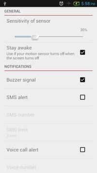WARNING: Some version of Android will turn of the motion sensor when the screen turns off. In this case you can use option "Stay awake". This will prevent the screen from timing out.