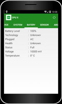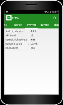 Application show information about System,Battery,Sensors,CPU