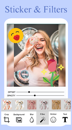 ◇ You can pick the favorite photo grid, edit collage with filters, background, stickers, text, etc.