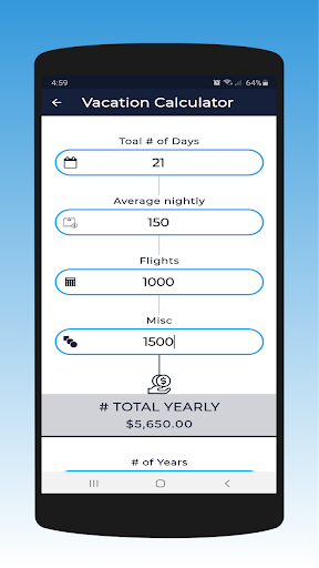 Vacation Calculator Can be used to calculate annual vacation cost and cost by number of years as well as adding inflation if desired.