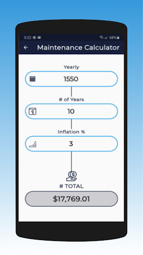Maintenance Calculator Calculate cost of maintenance or any other $ amount over period of time and add inflation if desired.