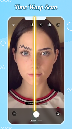 Catch up with the trendy time warp camera effect that is viral on social networking sites with Time Warp Scan and Face Scan. This is a face scanner with a funny filter for videos and images that is extremely popular with young people recently. With Funny filters, you can create unique faces and create interesting photos. The Time Warp Scan is one of the most popular and viral challenges on social media. Now you can use this trendy Face warp camera for free with the blue line filter.