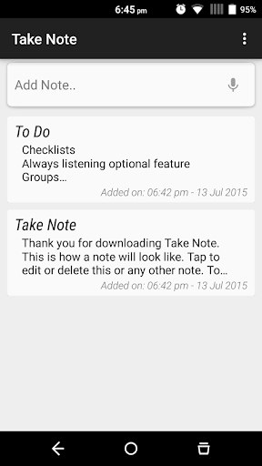 Take Note follows the material design spec to the word and can be customised in it's settings to use a dark theme instead of its default light theme. (More customisations soon)
