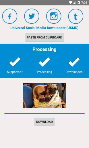 In fact very easy, You can share or paste any link of post from any of the mentioned sites directly to the program and it will dot he rest for you on parsing the video information and the thumbnail, then when you see the thumbnail of the video it will save the video for you in the Download folder of your android device.
