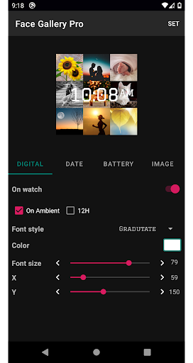 Photo Face Gallery Pro can choose nine photo gallery, and set it your background screen of your watch face.