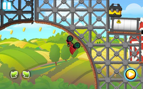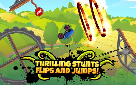 Enjoy dynamic gameplay, cartoon atmosphere, awesome slow motion effects, cool animations, realistic physics-based monster truck driving experience and beautiful views while racing on these crazy monster wheels!