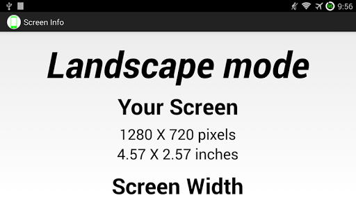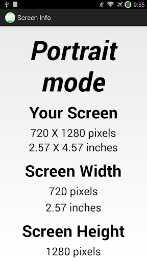 Screen Info is an app that gives you the dimension of your screen in pixels and inches. It lists the width, height, DPI(with definition of ldpi, mdpi, hdpi, xhdpi, xxhdpi, and xxxdpi),and the diagonal of your phone.