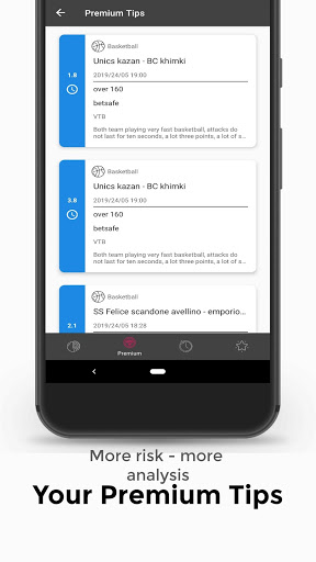 Our team of betting experts is continuously studying matches and sports to deliver the best betting predictions all around the world. Download MisterBet Tips for free on your Android device, enjoy getting daily sports tips and upgrade your plan to have access to more detailed analysis with the highest winning possibility.