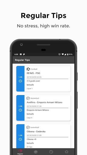 When it comes to the types of betting predictions and tips available in this free bet app, you will have free access to the Regular tips, while you need to upgrade your plan to have access to Premium tips.