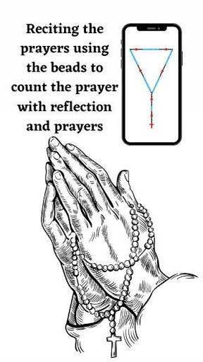 Reciting the prayers using the beads to count the prayer with reflection and prayers (Virtual Rosary).