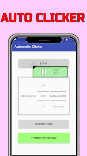 Auto Clicker Application - Automatic Tap or Touch on mobile screen, Easy Touch allows users to set option with easily users can set perfect timing of Clicks Counts. Be a smart device and game player with our one and only Super Fast Tapping app. Use Auto Clicker anytime anywhere without paying any little amount, It is easy and simple to set duration and play or pause with your choice via Auto Clicker Application Smart Touch App.
