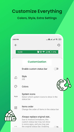 - Status bar color change