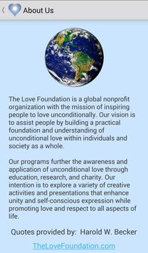 Inspire Love is a free app from our nonprofit The Love Foundation. Our vision is “inspiring people to love unconditionally.” This app is designed to bring you thoughtful and heart-felt inspirational quotes and resources that encourage your awareness of unconditional love. Use it anytime you want a spontaneous reminder of the love that you are.