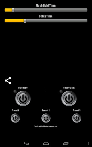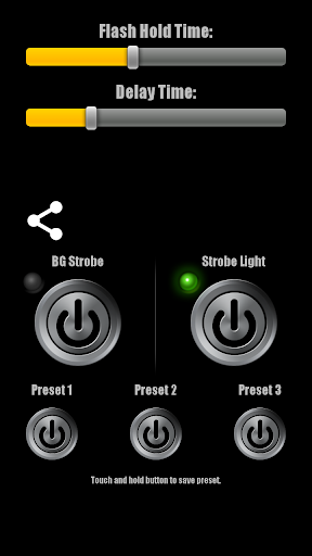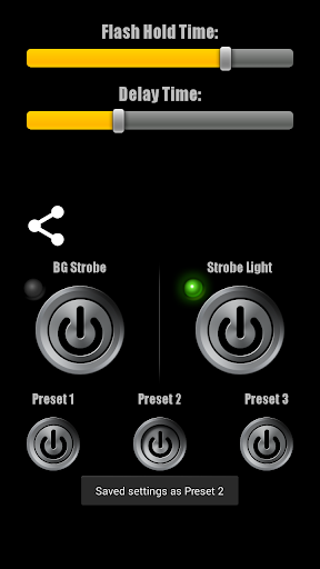 Turn any event into a party or rave with multiple devices running the app! Save your settings as one of the three presets and swap settings on the fly! Adjust the sliders to achieve the desired strobing rate with sliders for both the flash duration as well as the delay between flashes.