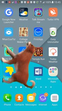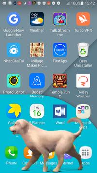 Dog on Screen - iDog, a funny dog simulator which displays a running and dancing puppy on my screen. It is one of the most funny dog games for pet lovers because you can see your pets on your screen anytime, anywhere. You can use it to prank friends that there is a dog living in your phone.