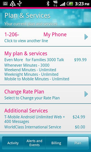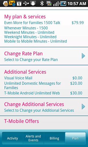 Get FREE onthego access to your TMobile account My Account makes it quick and easy to manage your TMobile account from your device. View voice minutes, messages, and data used and remaining. If you are the primary account holder on a Family plan, check usage for all lines on your account. See bill amount, due date and details. Pay your monthly bill from your phone and view payment history. View your plan details and add or change services.track events such as plan changes, billing activities, handset order status and more. Set Alert notifications for minute usage, bill due date and more. Get quick access to Device tools such as wifi bluetooth screen brightness settings and more. Access support information and troubleshooting toolstap Menu button on your device, and then select My Device. To learn more about application permissions go to: http:support.tmobile.comthread5951