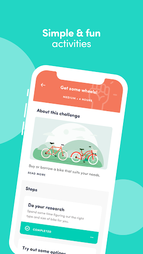 The app lets you track your progress and the environmental impact you have, alongside the broader community’s impact, ticking off achievements as you go and scheduling new activities into your calendar.