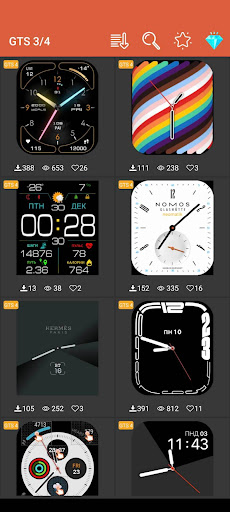 Users can download, add to favorites, search, filter, sorting watch faces.