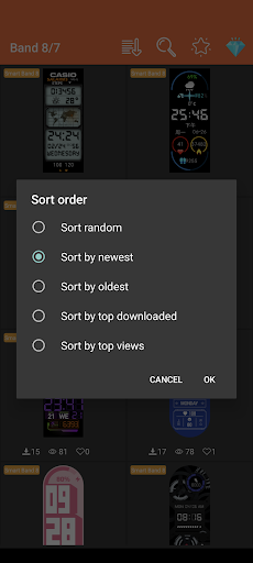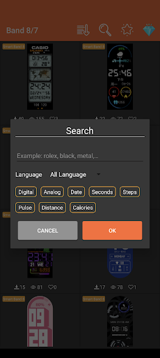 Users can download, add to favorites, search, filter, sorting watch faces.
