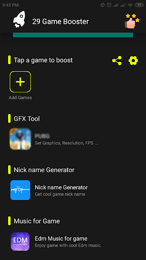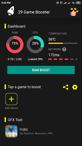- Game booster : boosting game with special function reduce lag when play game