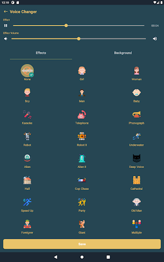 - Voice changer app supports many effects.