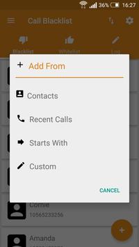 With phone call blocker you can either block numbers from your contacts list or calls history or messages logs or you can add the numbers manually to the blacklist. The numbers you put in the blacklist will be blocked quietly and and without any signs of a call, and you will not be distracted by unwanted phone calls and SMS.