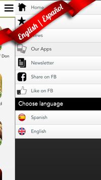 - Language selector (English, Spanish).