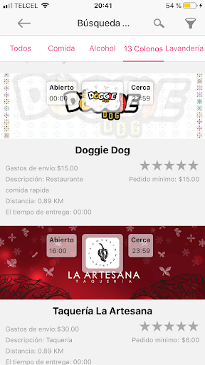 Nota: La disponibilidad de los negocios depende de la ubicación/dirección en la que el usuario se encuentre.